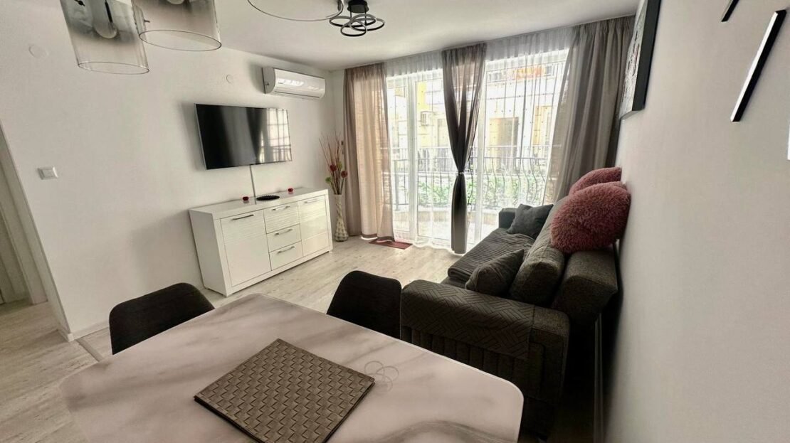 Жилището е стилно завършено и обзаведено, готово за незабавно ползване. Предлага функционално и комфортно пространство, подходящо както за целогодишно обитаване, така и за ваканционен престой.