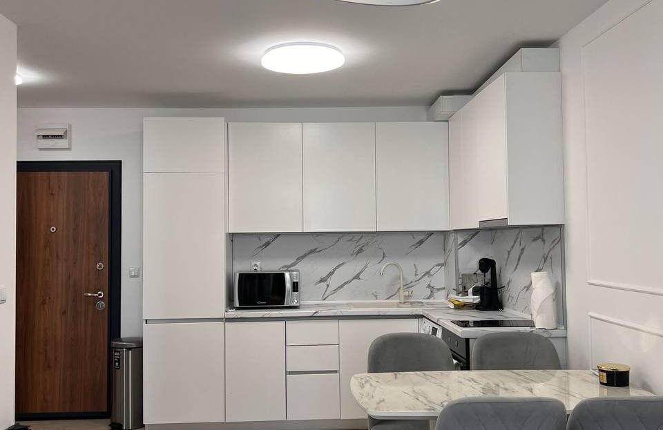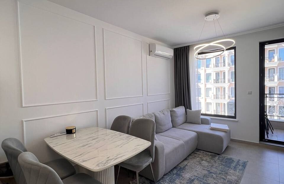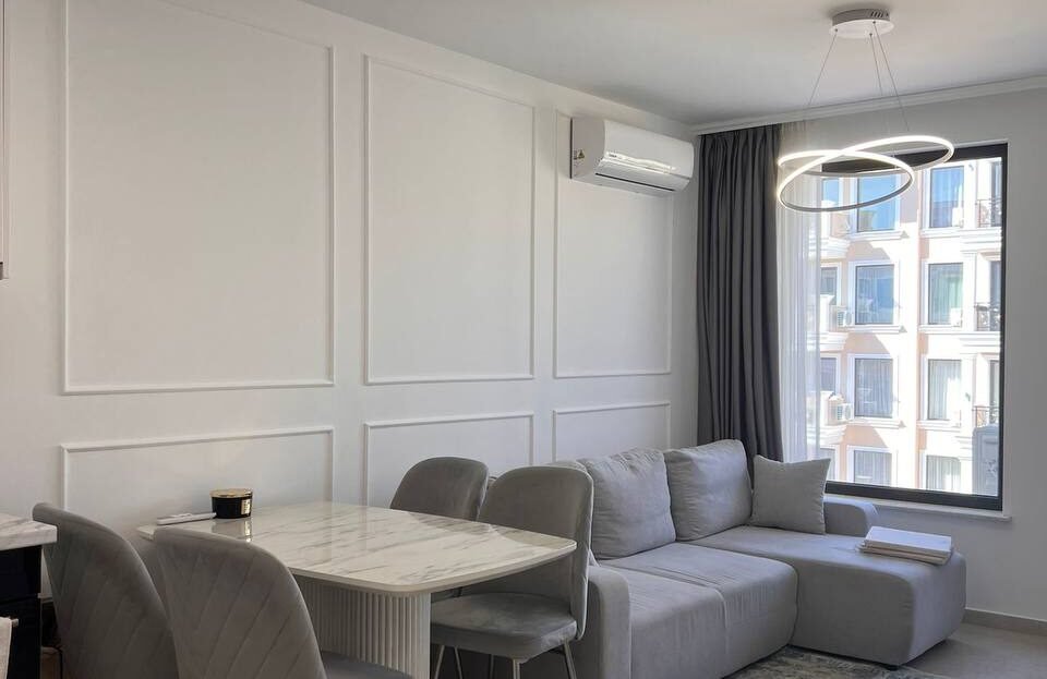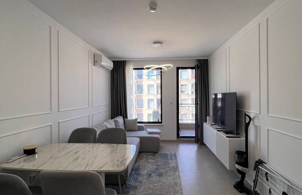 С площ от 52 кв.м, имотът впечатлява с елегантен интериор, луксозно и чисто ново обзавеждане, както и висококачествено оборудване. Всеки детайл е подбран с фин усет – модерни мебели, изискано осветление и прецизно подбрани детайли, създаващи усещане за уют, стил и комфорт.