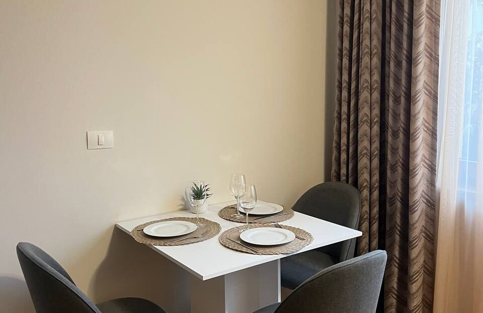 Предлагаме уютен и стилно обзаведен двустаен апартамент, разположен на първи етаж в един от най-предпочитаните комплекси на българското Черноморие – „Райска градина“.