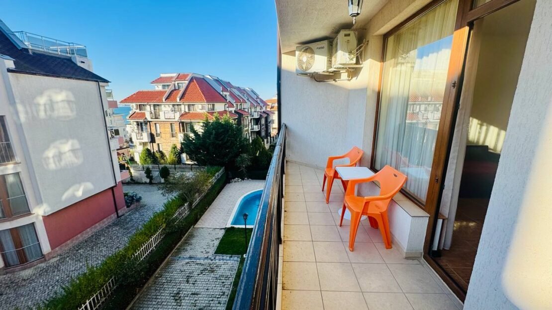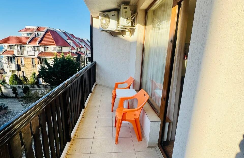 Жилището е топло и светло, с южно изложение на дневната и спалнята, което осигурява естествена светлина през целия ден. От апартамента се открива малък, приятен изглед към морето, допринасящ за усещането за ваканционен комфорт.