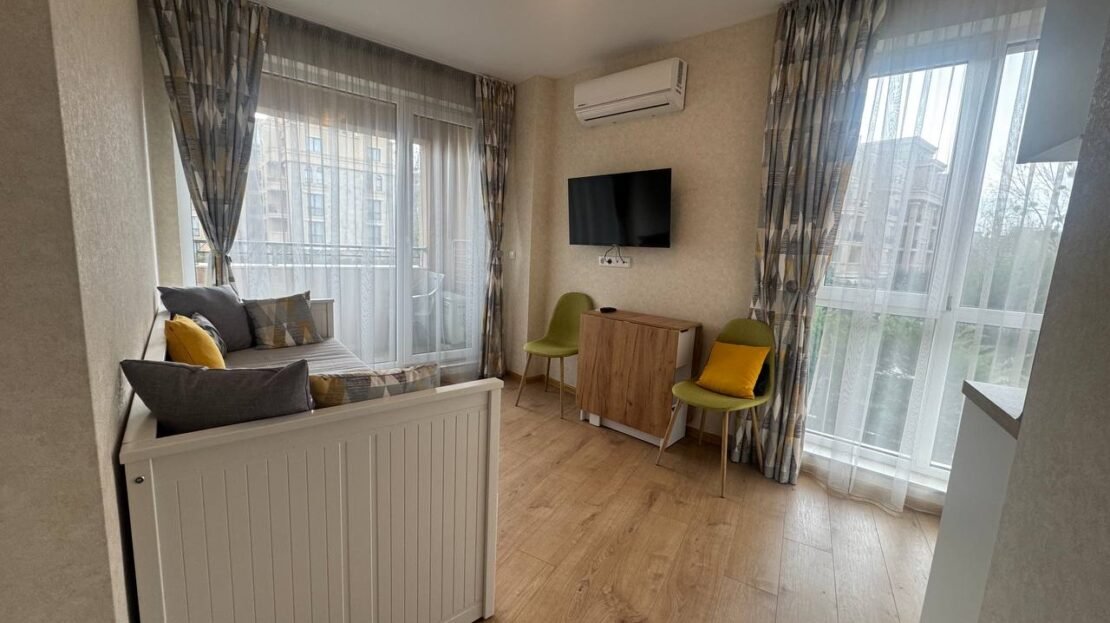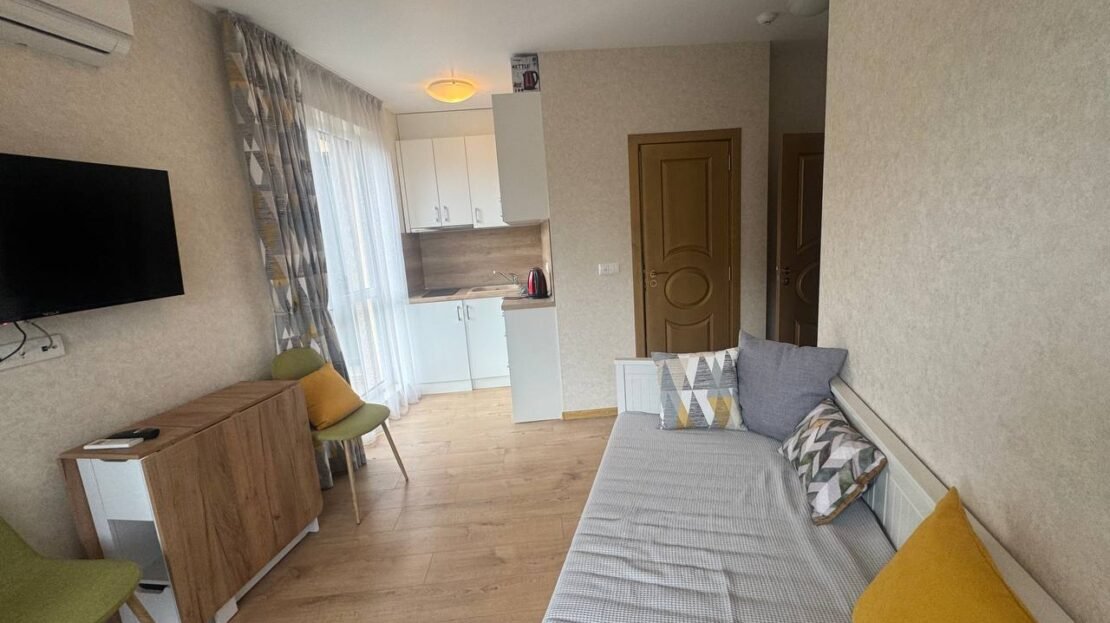 Предлагаме за продажба светло и уютно студио, разположено в един от най-предпочитаните и зелени комплекси в Слънчев бряг – Aphrodite Park.