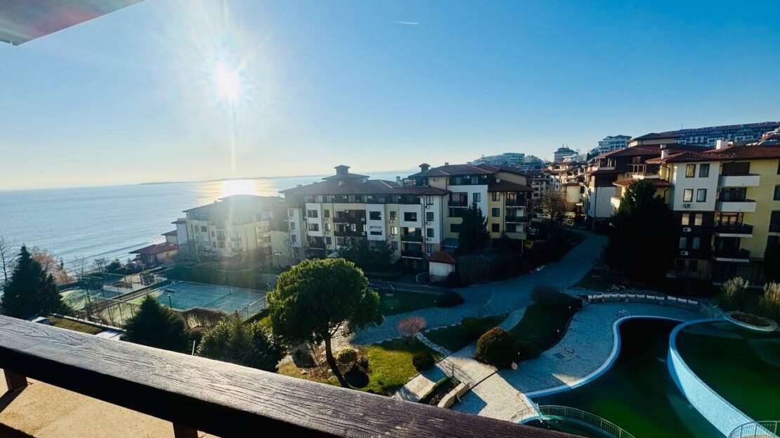 Предлагаме за продажба просторен и изключително светъл апартамент с две спални, разположен в престижния комплекс „Райска градина“, с неповторима панорамна гледка към морето и залива.
